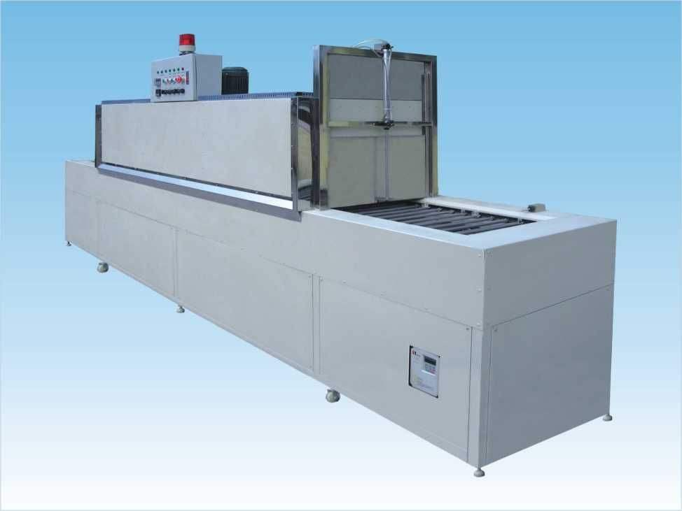 隧道式烘干爐為繼電器控制全自動(dòng)形式,除人工裝卸工件外,其它工藝工序過程全部自動(dòng)完成。人工將要烘干的工件放在輸送帶上,輸送系統(tǒng)自動(dòng)按順序?qū)⒘慵来嗡屯鞴ば蚨?,?duì)工件進(jìn)行烘干、冷卻后到達(dá)下料工位,整個(gè)烘干過程即完成。整機(jī)設(shè)計(jì)合理,外裝美觀占地小易拆方便維修。