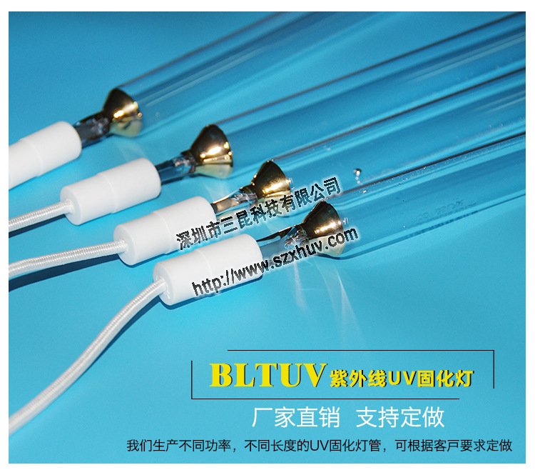 UV燈管在鞋業(yè)、PCB、電子、涂裝、印刷、觸摸屏、液晶等眾多領(lǐng)域得到廣泛應(yīng)用,主波長(zhǎng)為365nm,可對(duì)UV油墨快速干燥,功率從1KW到15.6KW,可以根據(jù)客戶(hù)要求訂制。